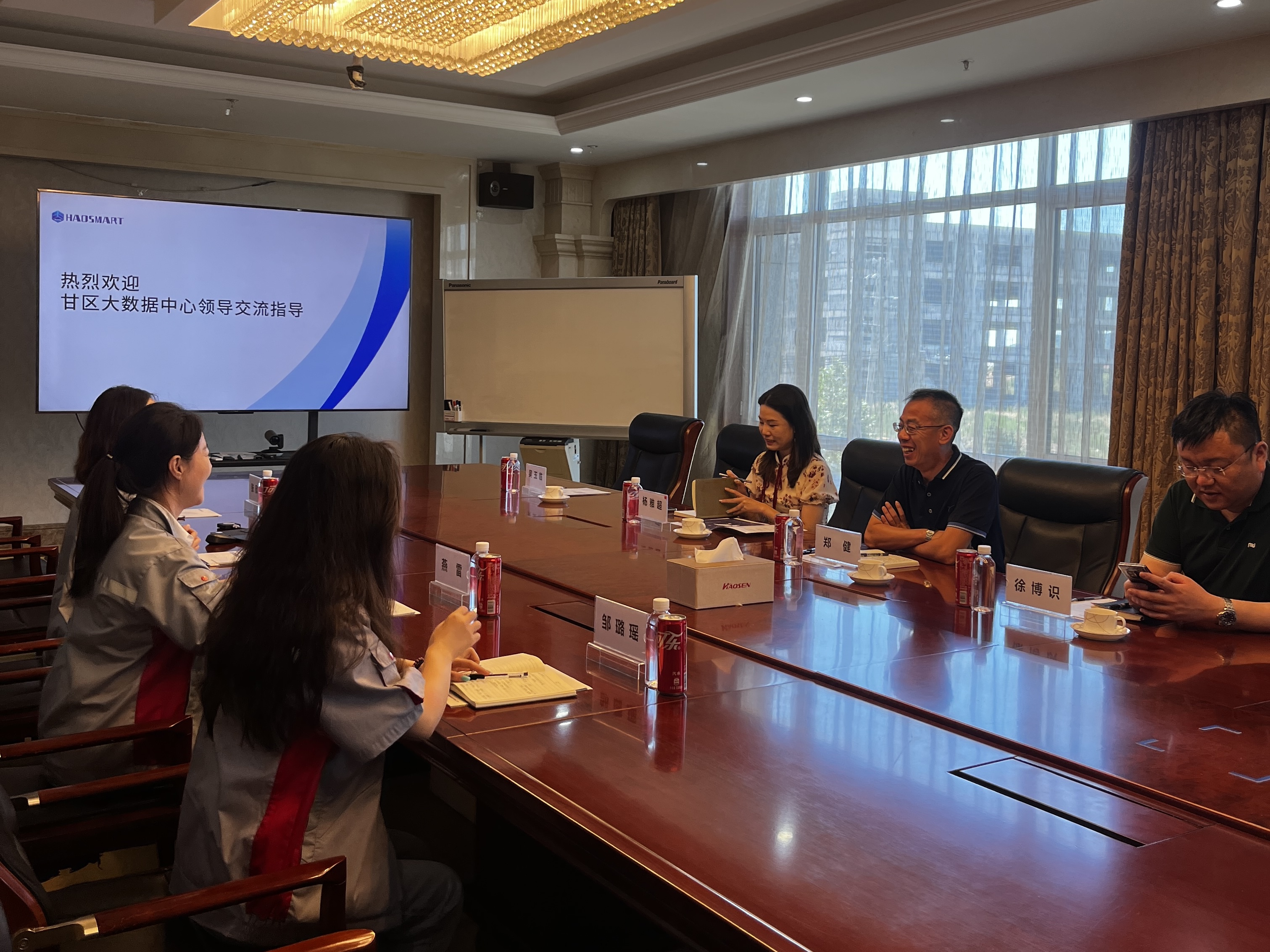 甘井子区大数据中心作为数据资源汇聚、共享和应用的重要平台,始终致力于推动大数据与经济社会各领域的深度融合。本次来访,其不仅深入了解了豪森智源的发展历程、业务范围以及未来的发展规划,也充分感受到豪森智源深耕行业近20年累积的强大的技术实力和创新能力。